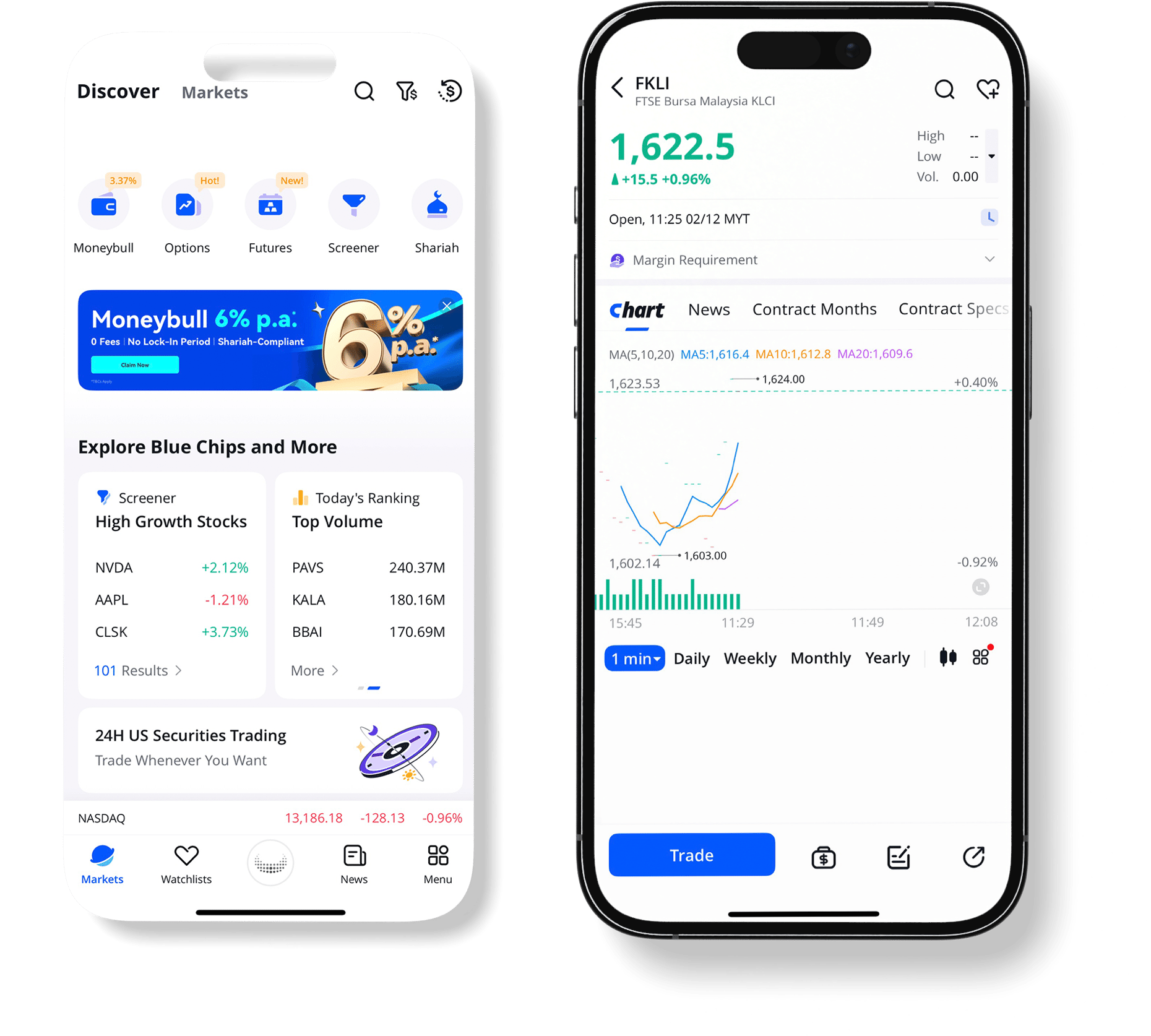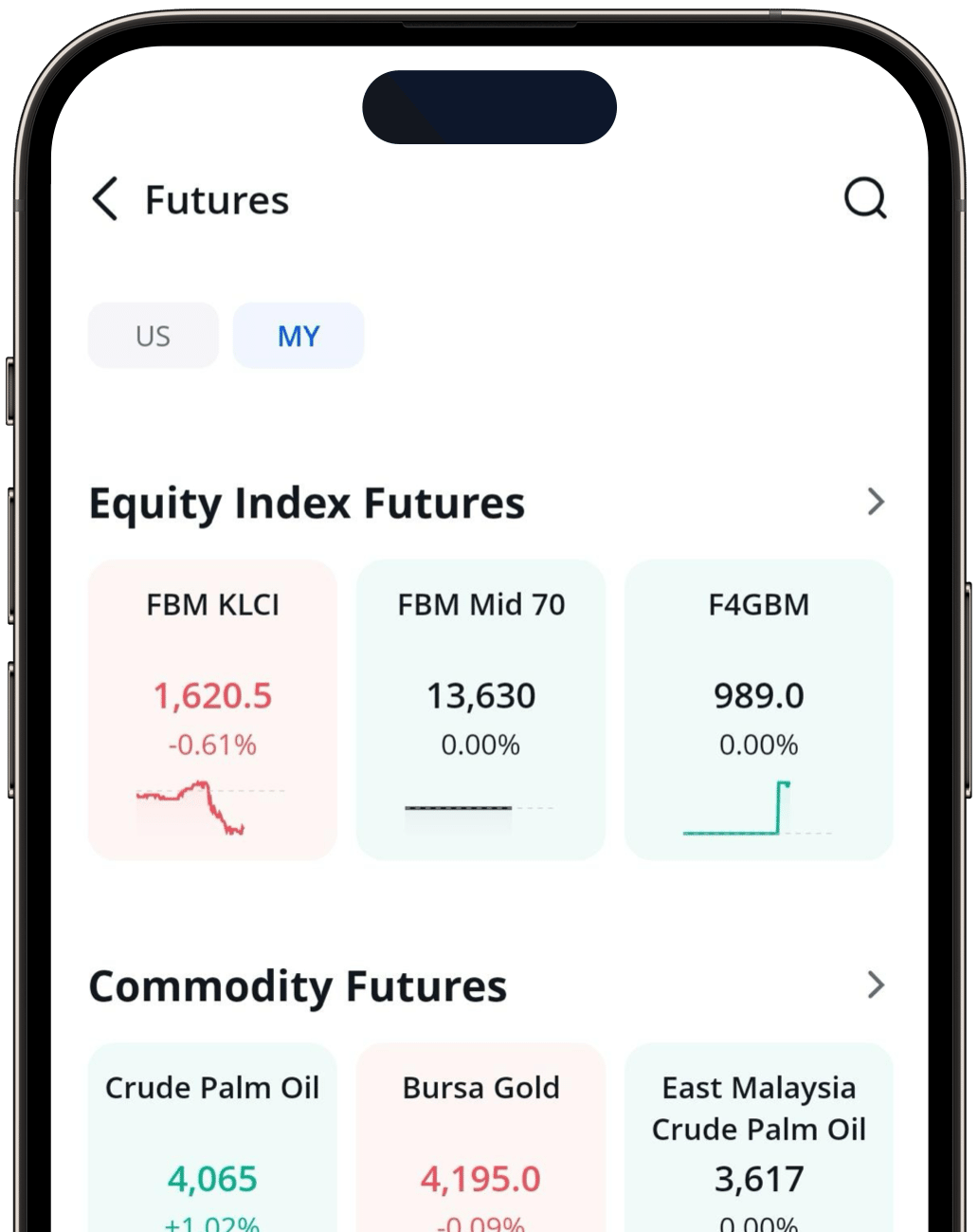 Berdagang Kontrak Niaga Hadapan FTSE Bursa Malaysia Kuala Lumpur Composite Index (FBM KLCI), yang memberikan pendedahan kepada pedagang terhadap komponen pendasar FBM KLCI.