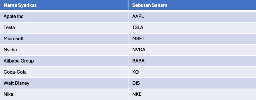 Beberapa jenama lazim yang disenaraikan di Nasdaq dan NYSE;​