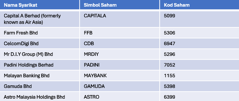 Beberapa jenama lazim yang disenaraikan di Bursa Malaysia;​