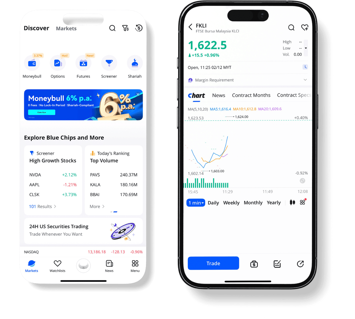 Akses niaga hadapan Bursa Malaysia Derivatif dengan pengalaman dagangan moden. Webull menawarkan alat carta inovatif serta menyokong margin intraday, memberikan fleksibiliti untuk dagangan anda.