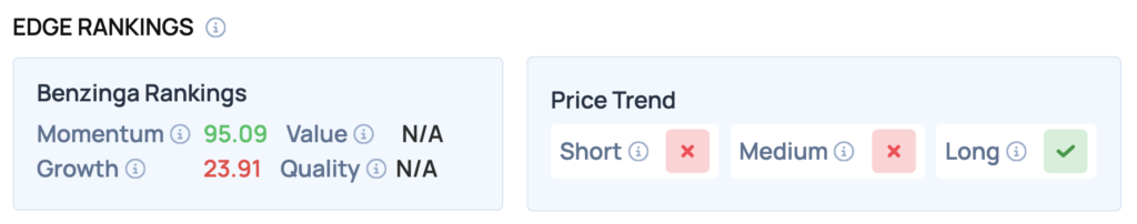 Benzinga Edge Rankings: Benzinga Edge rankings highlight a strong Momentum score of 95.09 for Innoviz Technologies, significantly outpacing its Growth score of 23.91.