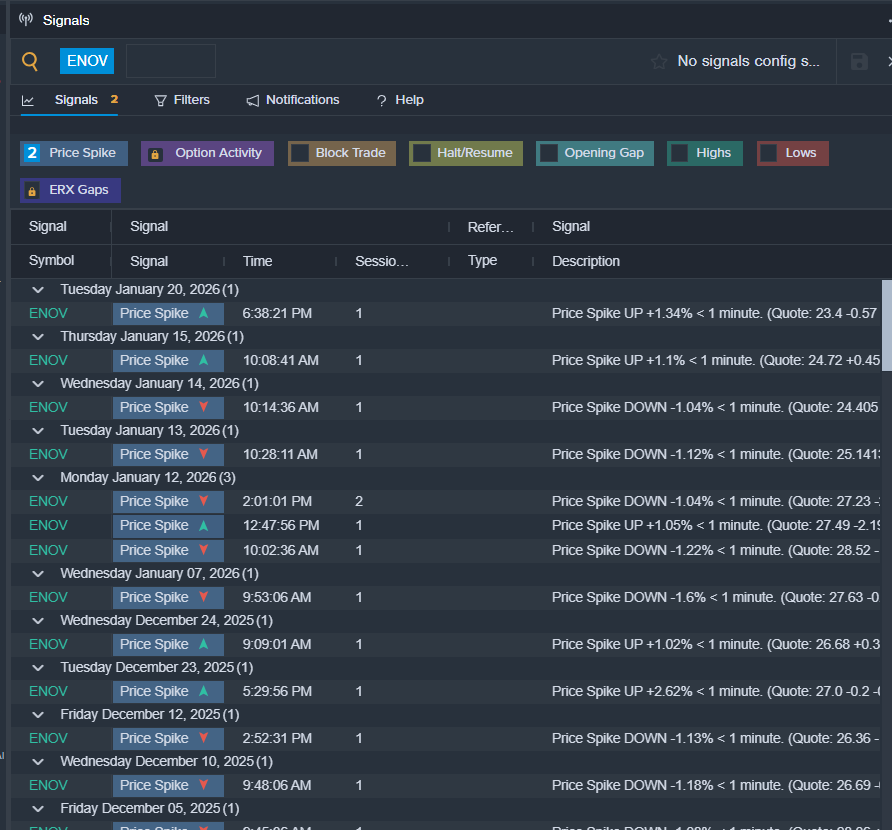 • Benzinga Pro’s signals feature notified of a potential breakout in ENOV shares.